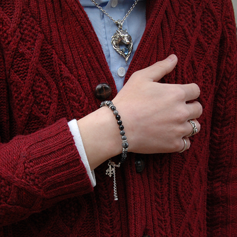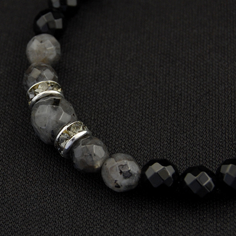 重厚なオニキスとのグラデーションが落ち着いた美しい印象の天然石ブレスレット。