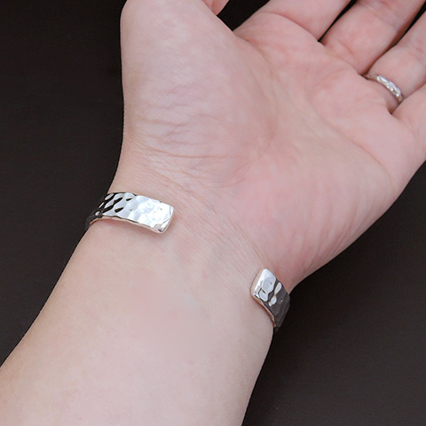 全体にたたきで不規則な凹凸をつけ、陰影によって独特の立体感を生み、様々な表情を見せてくれます。