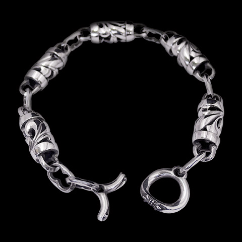 TOPシルバー ブレスレット パルメットリンクブレス 価格: ¥88,000 (税込) 販売期間: 数量: 個 在庫 在庫あり 返品についての詳細はこちら シリンダー状の透かし彫りによって、一段と立体感溢れるつくりとなっている。【素 材】 シルバー925【サイズ】 全長220mm 幅9mm ローラー1コマ30mm 関連商品 ギフトBOX(中) ¥440(税込) 数量:0123456789101112131415161718192021222324252627282930 個 ギフトBOX(小) ¥550(税込) 数量:0123456789101112131415161718192021222324252627282930 個