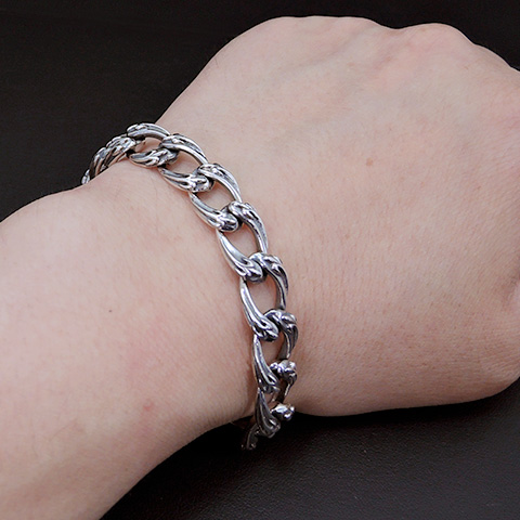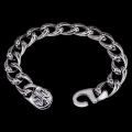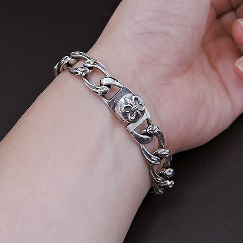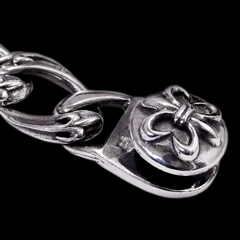 喜平のチェーンにアレンジを加え、美しい流曲線に仕上げたチェーンをリンクしたブレスレット。チェーンのコマひとつひとつに流れるようにユリのモチーフを配し、シンプルながら存在感のあるデザインになっています。他に類を見ないオリジナリティ溢れる留め具の構造にも注目して欲しい。