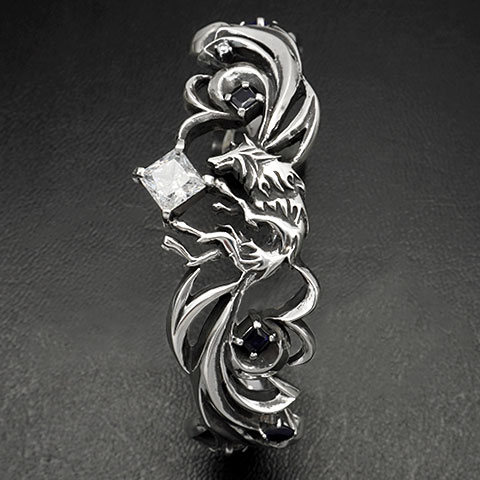 中央の狼が持つキュービックシルコニアを大振りなスクエアカットに変更し、
