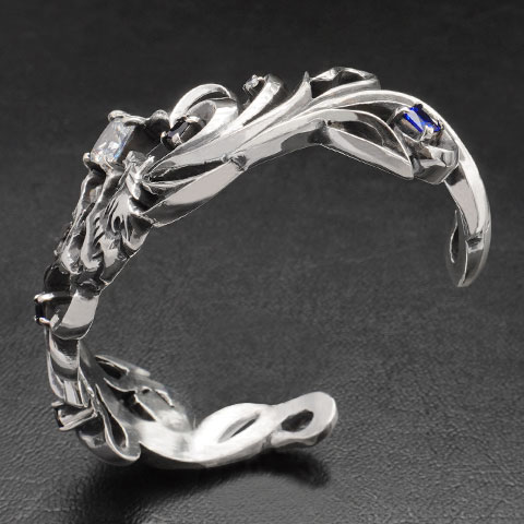 パルメット部分に大小さまざまなキュービックジルコニアとシンセティックサファイアを散りばめた