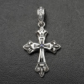 立体的な2重構造になっているクロスの上下左右にユリのモチーフを組み合わせたゴシックテイストなクロスペンダント。ラインストーンを配したバチカンは太めのチェーンや革紐まで通るサイズになっているので、色々なコーデが可能です。程よいサイズ感で男女問わず着用しやすい大きさなのでギフトにもおすすめ。