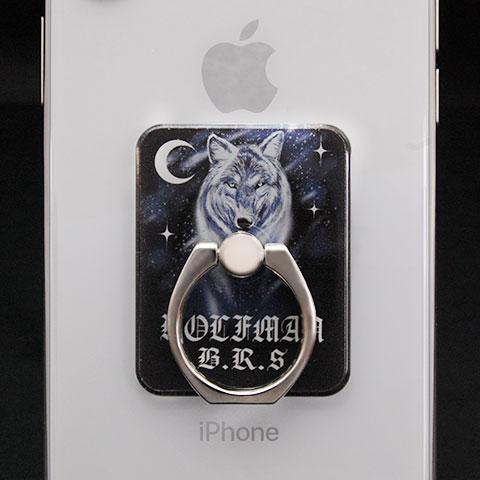 闇夜に佇む白銀の狼を描写した神秘的なデザインのスマホリング。