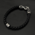 シンプルなデザインながら、留め具やワンポイントのシルバーパーツにもさり気なく狼がデザインされブランドらしさを感じることが出来る四つ編みレザーブレスレット。